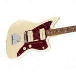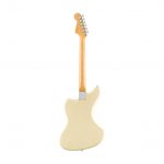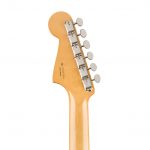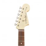 For authentic, vintage-style tone Fender re-voiced the pair of wide single-coil Jazzmaster pickups to behave more like the originals. The warm, smooth-sounding neck pickup is balanced by the bright, cutting bridge pickup. The Mid ’60s C-shaped neck has a classy painted headstock, along with a 7.25?-radius maple fingerboard with 21 vintage-style frets for classic feel. A vintage-style Jazzmaster floating tremolo and vintage-style tuning machines provide original-era aesthetics, rock-solid performance and tuning stability. Other features include the classic lead/rhythm circuit, chrome hardware and 4-bolt neck plate. Includes a deluxe gig bag.